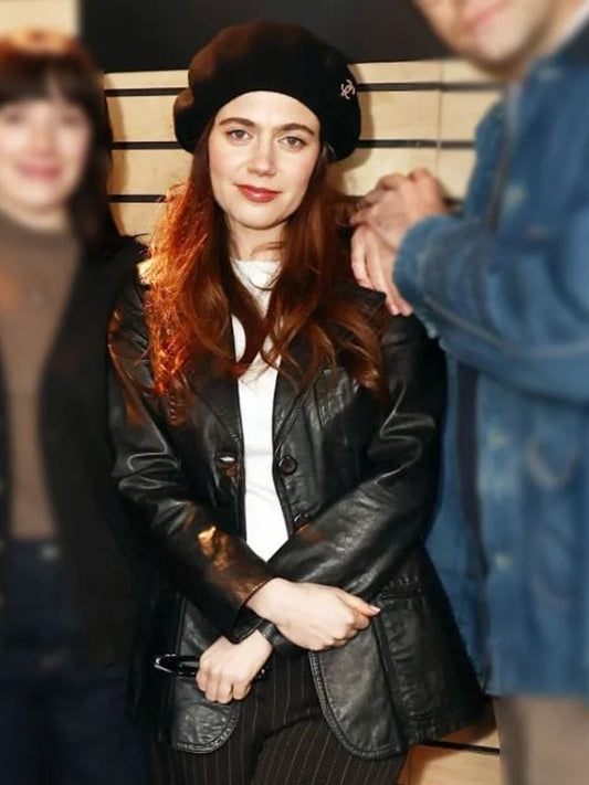 Oh Hi! Molly Gordon Black Leather Blazer