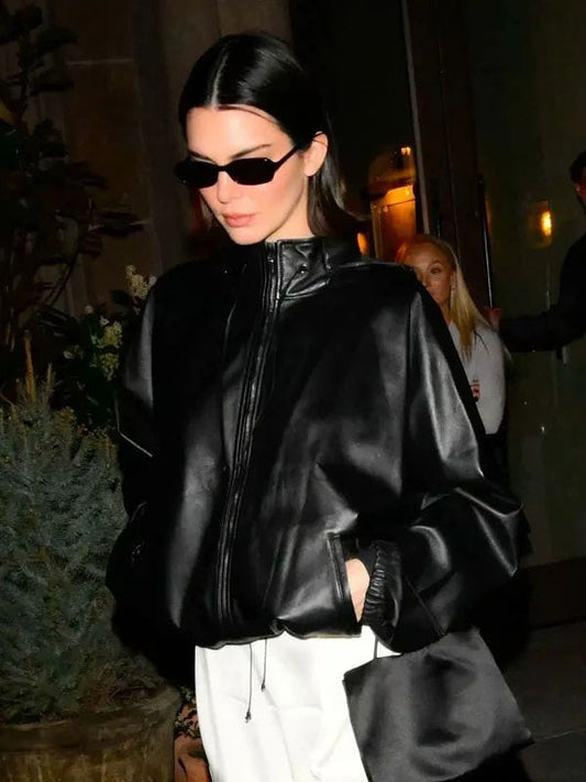 NYC 2025 Kendall Jenner Black Leather Jacket