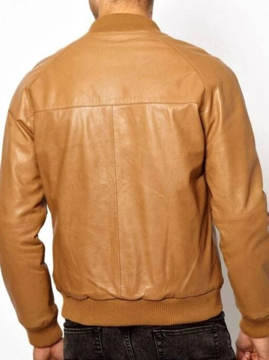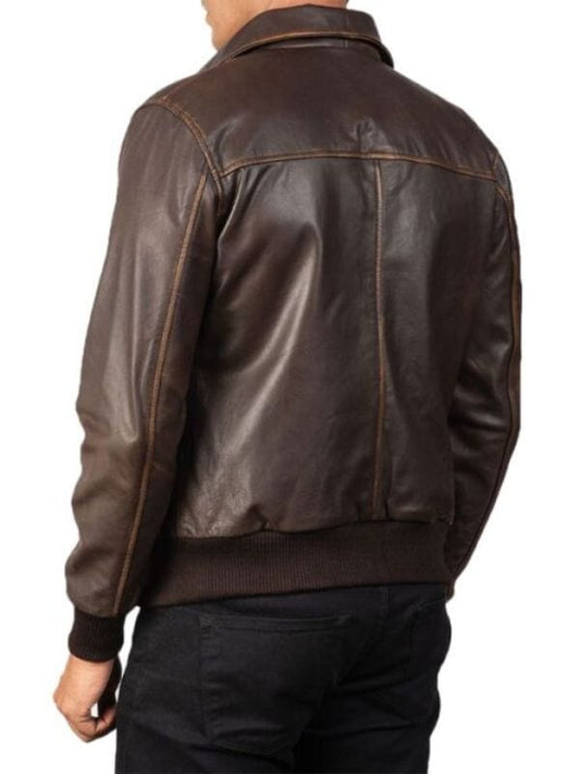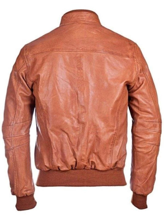 Blouson aviateur en cuir marron à quatre poches pour homme